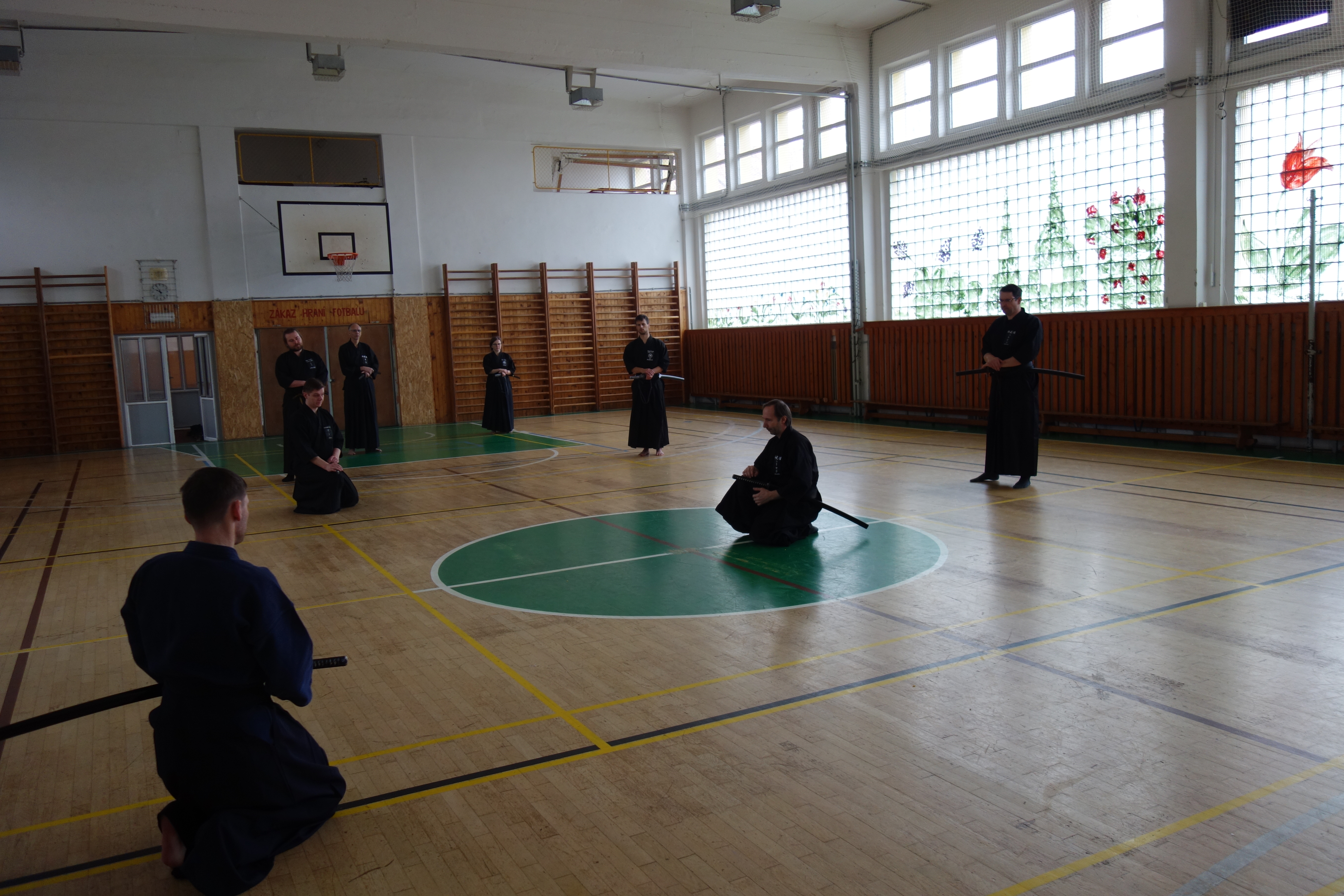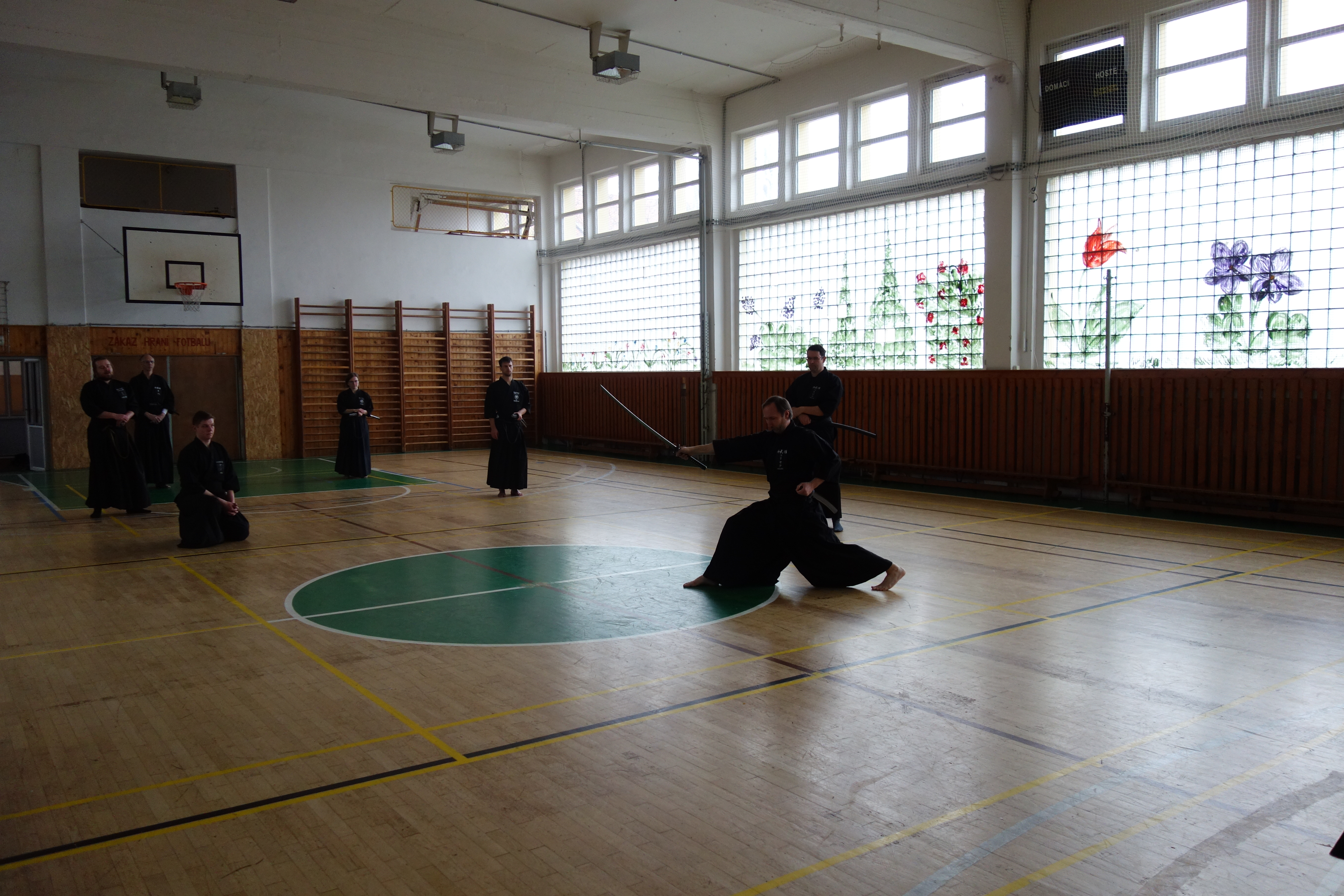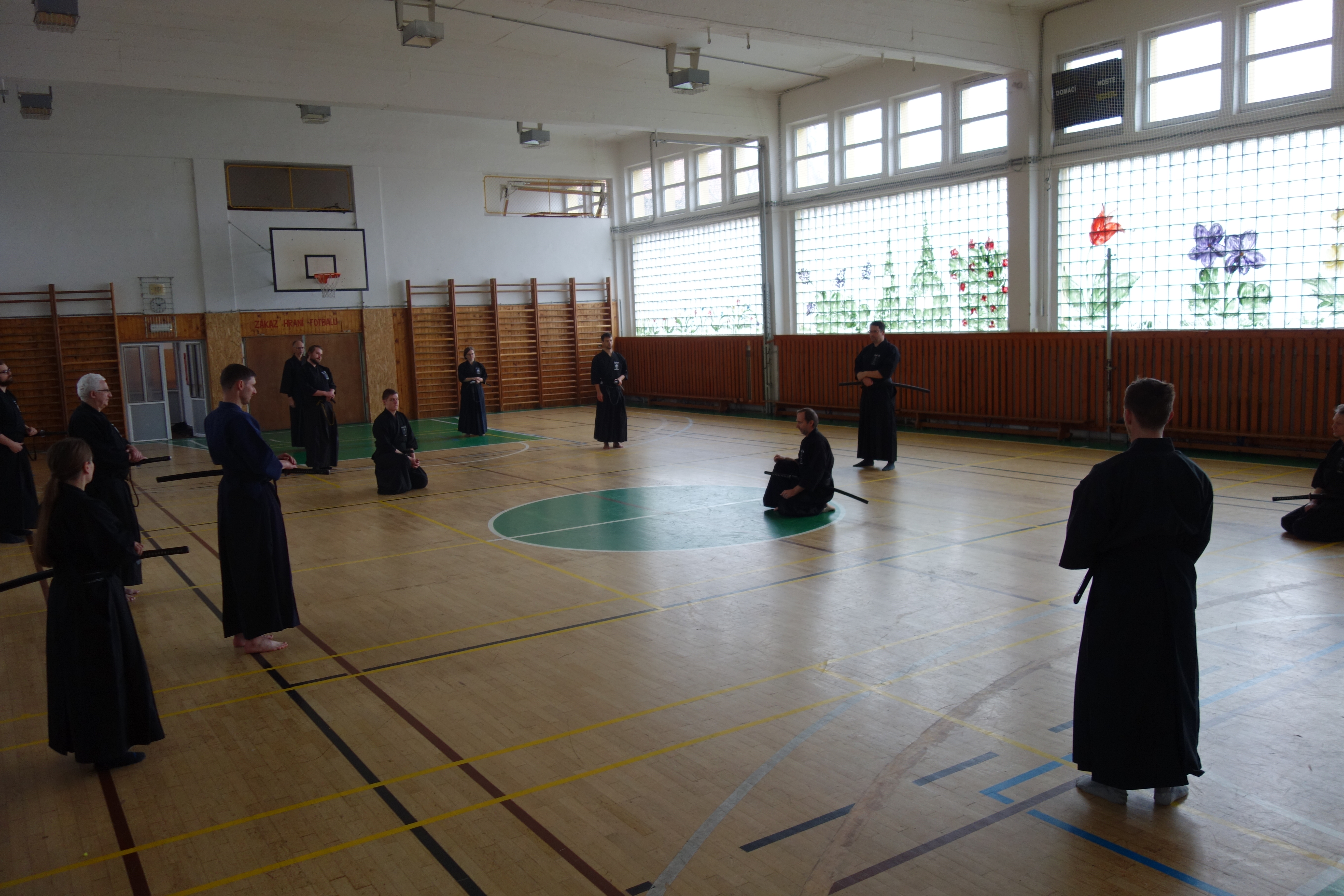 Začátek semináře probíhal s mírnou rozcvičkou a poté už jsme se mohli pustit do cvičení. Všechny techniky, tedy až na 10. Nukiuchi jsou prováděné z pozice tatehiza. Opakování je matka moudrosti a v našem případě chudenu jakbysmet, jsme prošli všechna kata z předchozího semináře a doplnili je o další, které nám zbývaly. Probrali jsme tak všechny kata chuden detailně s ukázkou a důrazem na logiku prováděných technik a několikrát zopakovali. Mě osobně moc pomohly praktické rady a tipy (práce nohou, rukou…), byly tak pomocí, jak dosáhnout správného pohybu.