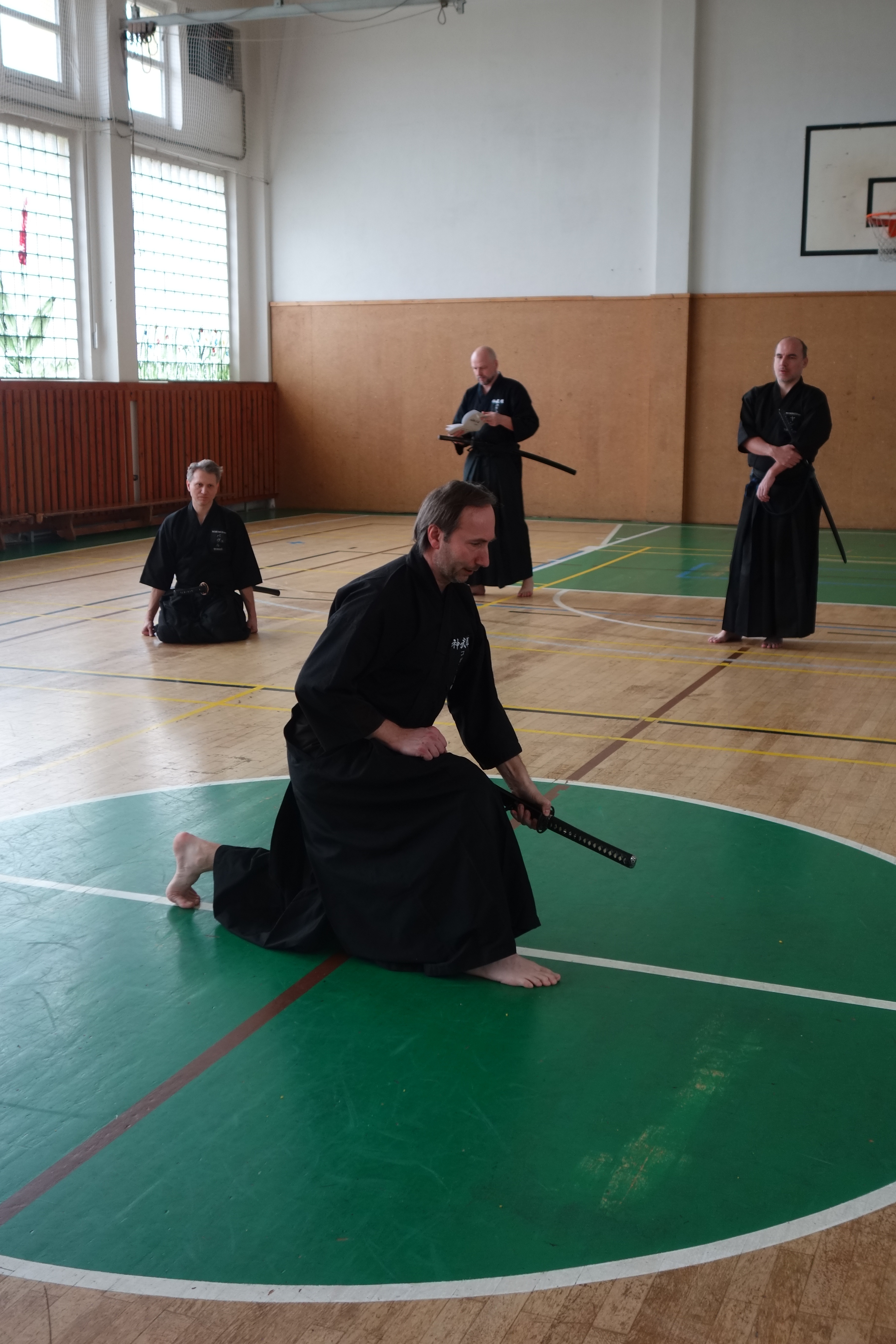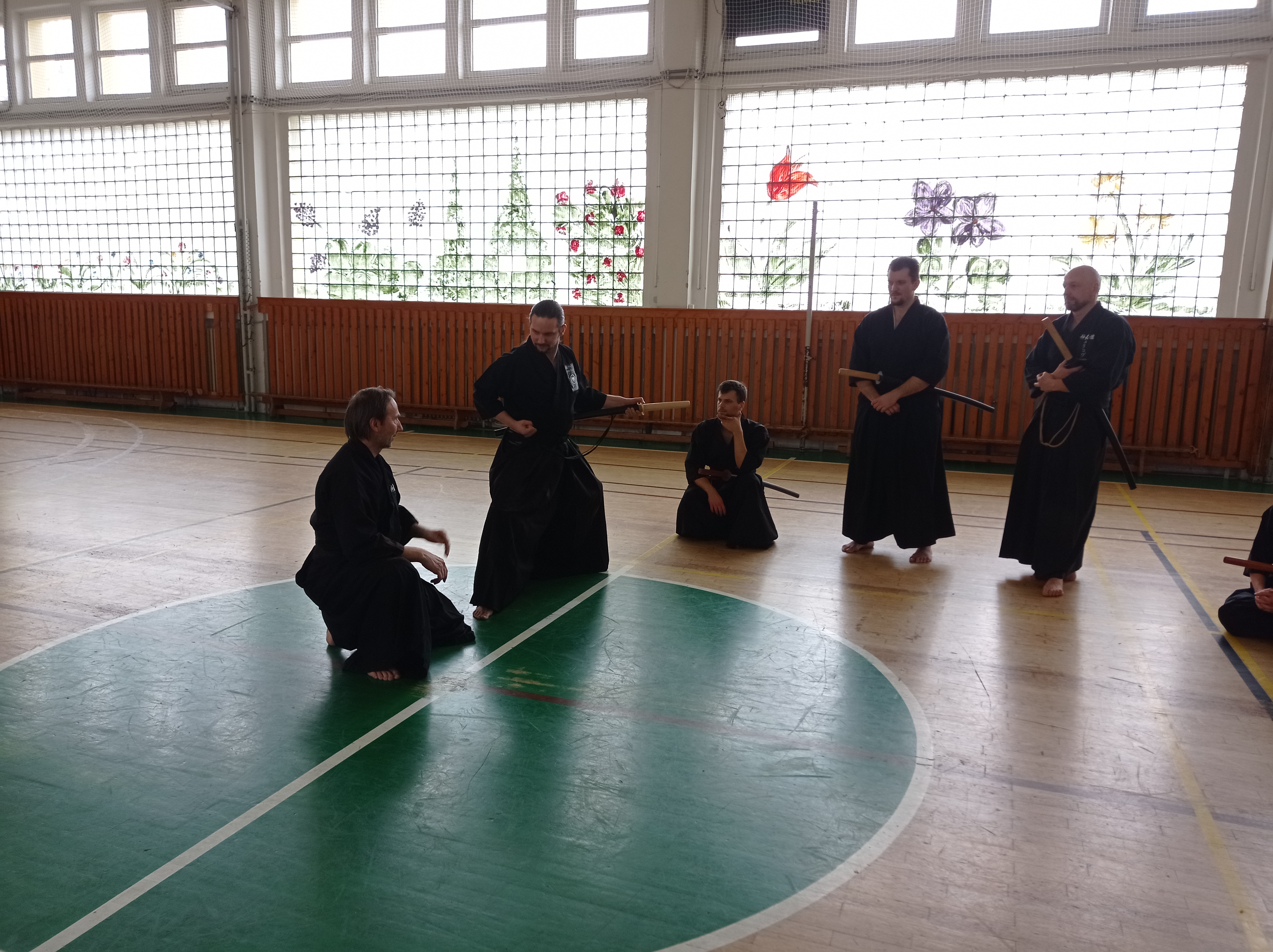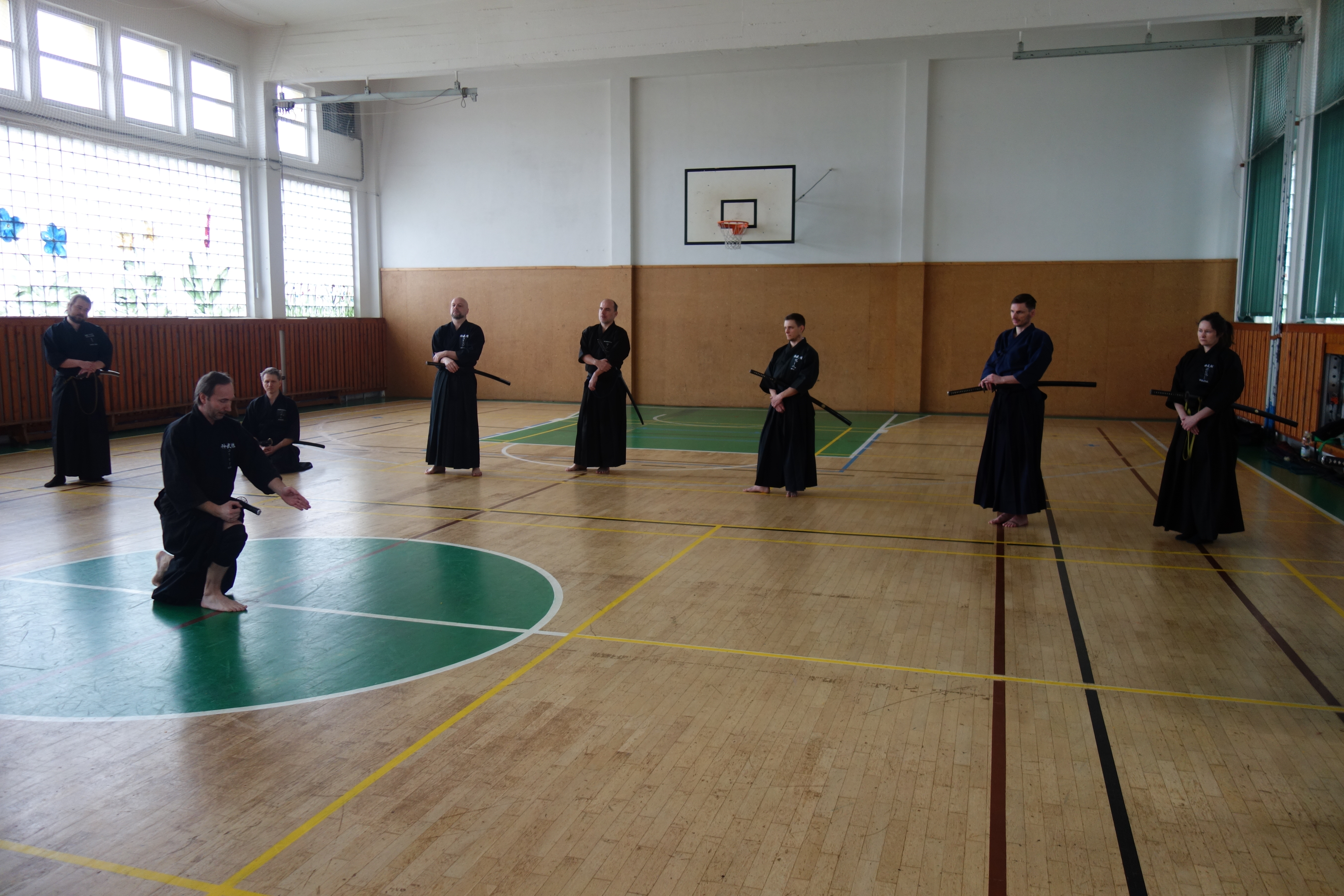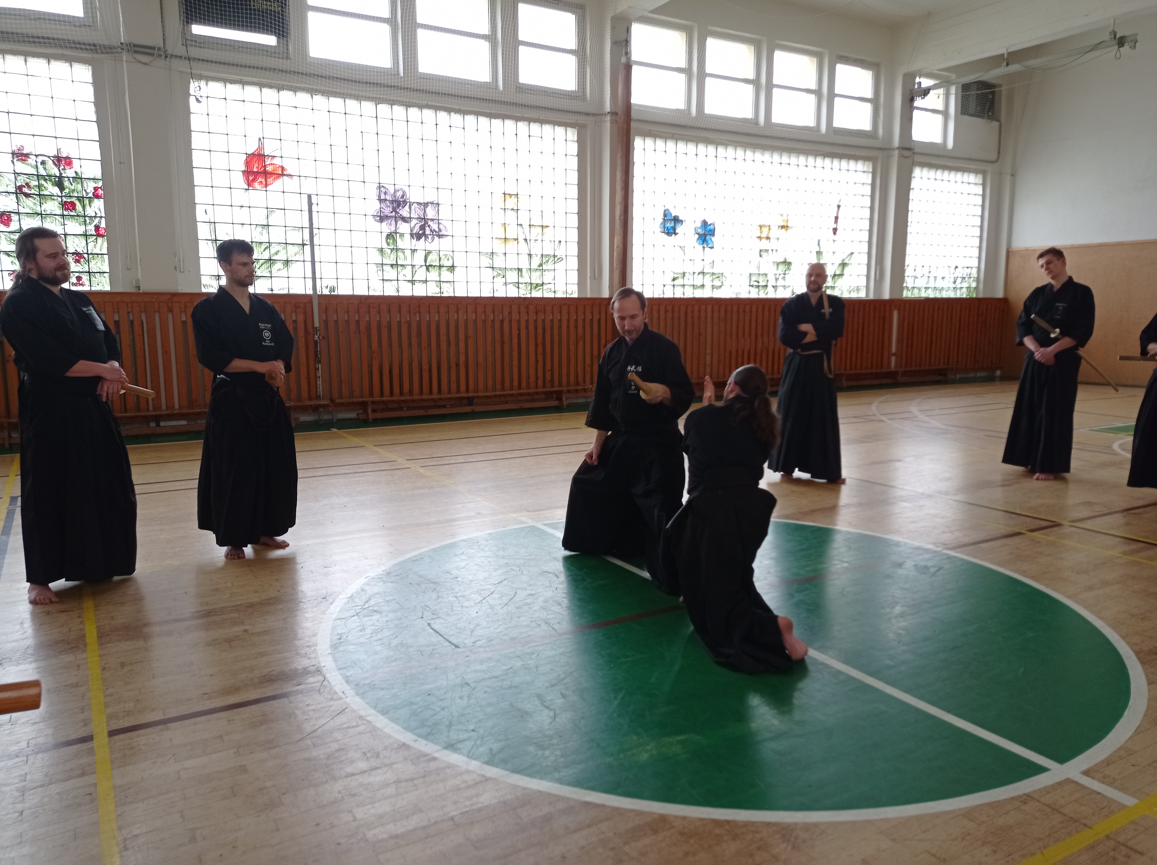 Začátek semináře probíhal s mírnou rozcvičkou a poté už jsme se mohli pustit do cvičení. Všechny techniky, tedy až na 10. Nukiuchi jsou prováděné z pozice tatehiza. Opakování je matka moudrosti a v našem případě chudenu jakbysmet, jsme prošli všechna kata z předchozího semináře a doplnili je o další, které nám zbývaly. Probrali jsme tak všechny kata chuden detailně s ukázkou a důrazem na logiku prováděných technik a několikrát zopakovali. Mě osobně moc pomohly praktické rady a tipy (práce nohou, rukou…), byly tak pomocí, jak dosáhnout správného pohybu.