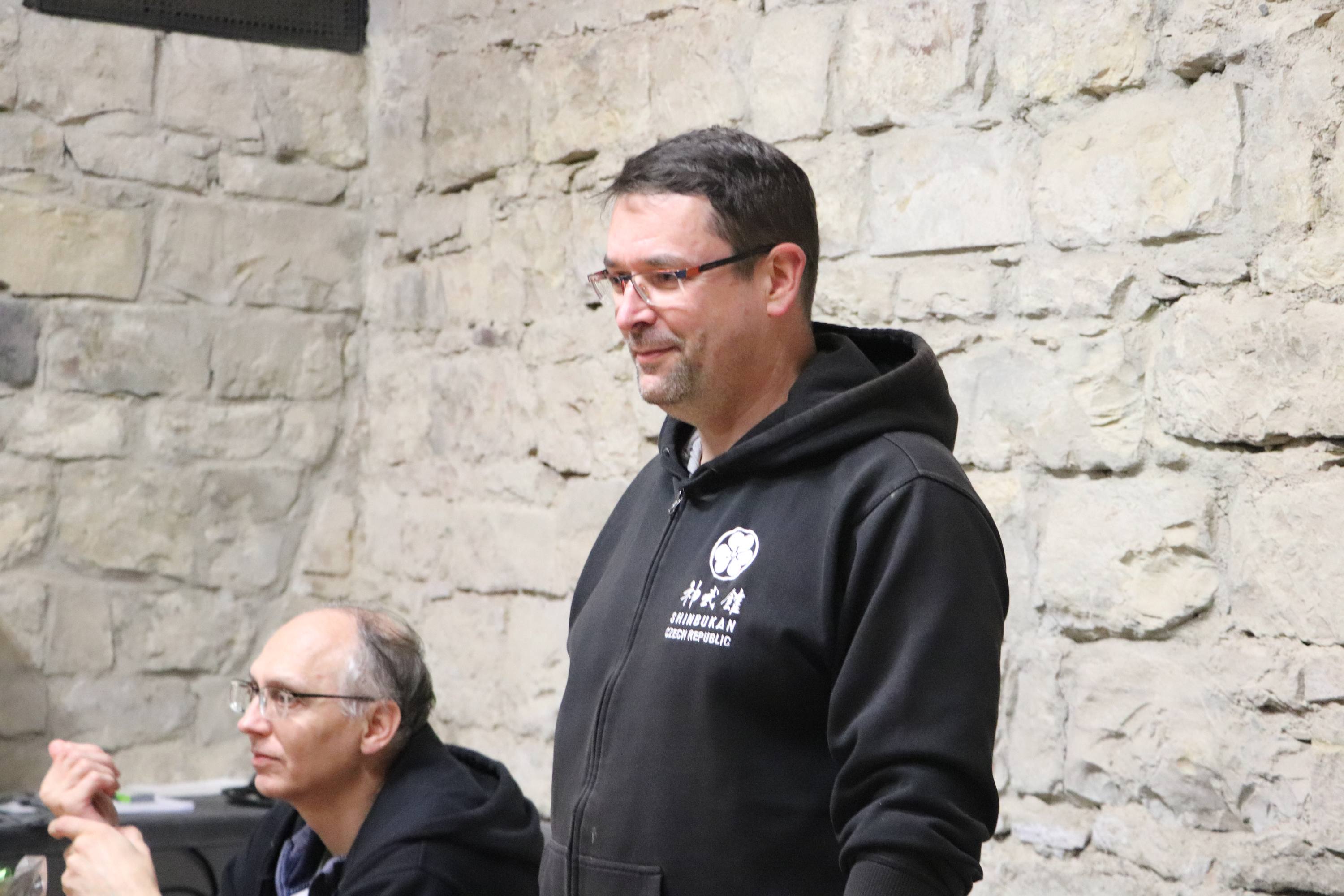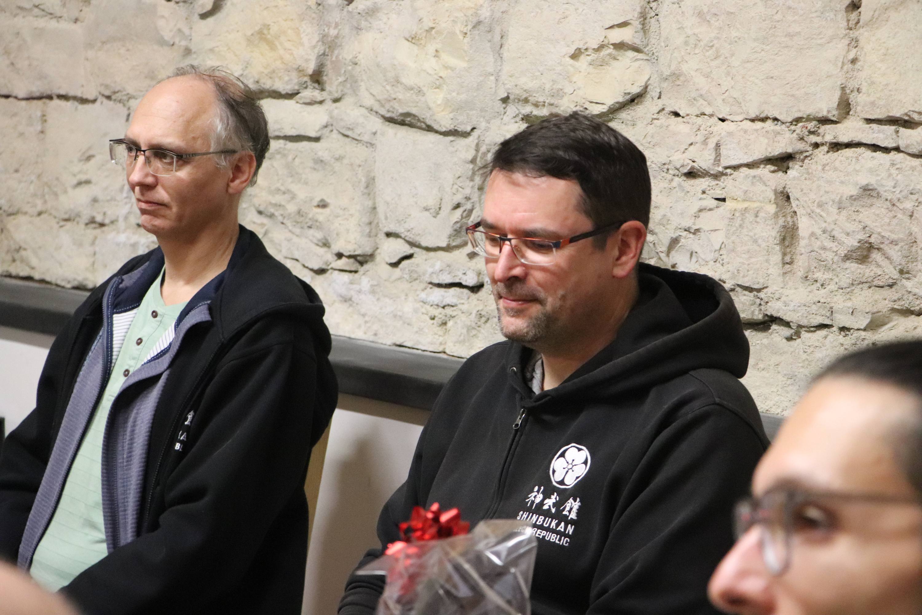 V rámci proslovu Pavel poděkoval za tvrdou práci členům dojo a vyzdvihl zásluhy Jardy (za vedení tréninků v jeho nepřítomnosti) a Lenky (za perfektní organizaci semináře). Oba dostali od dojo drobou pozornost v podobě japonských lakovaných mističek.