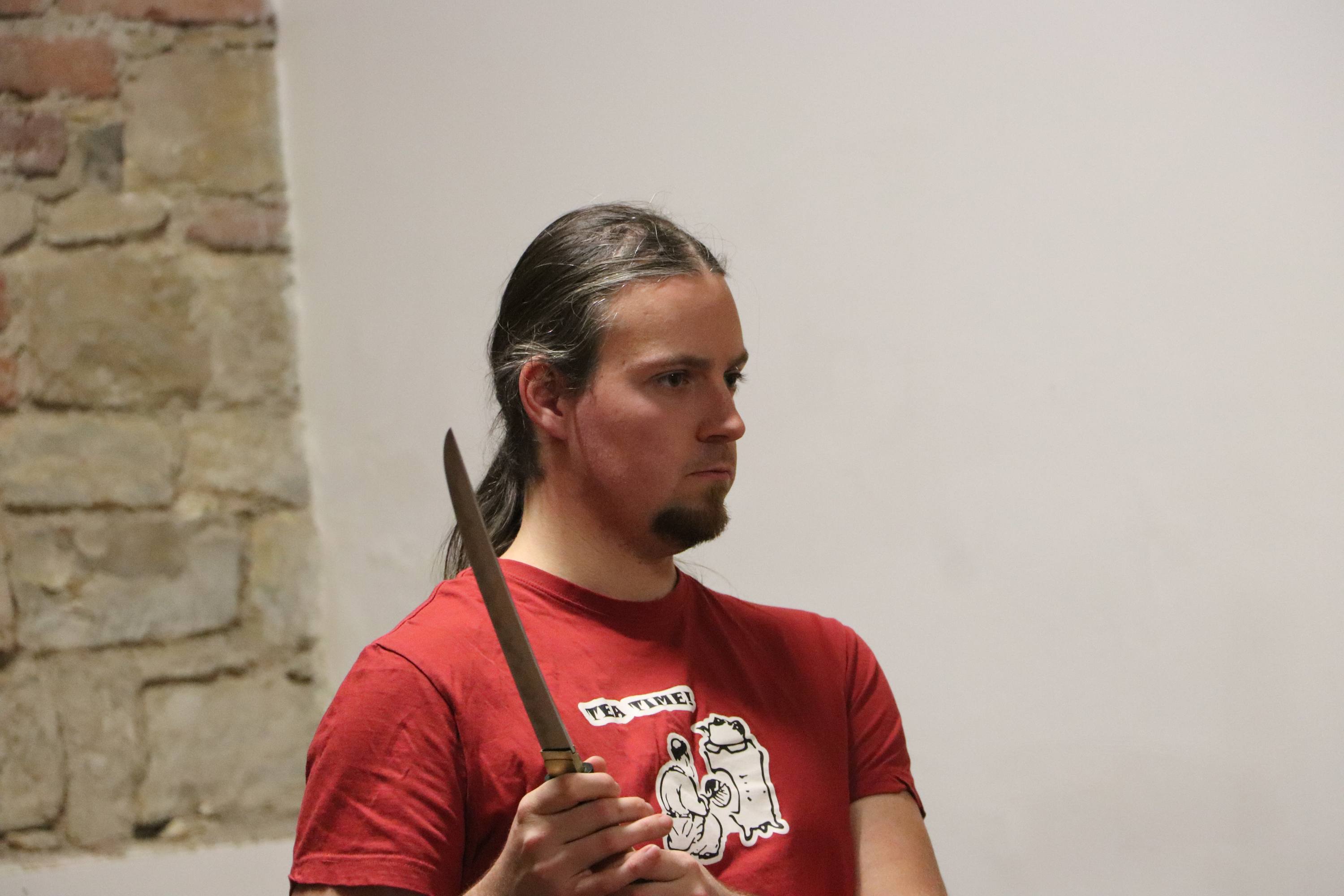 Pak už začala volná zábava, kterou doplnila kulturní vložka – donesené originály japonských mečů a mečových záštit ze jeho sbírky člena dojo.