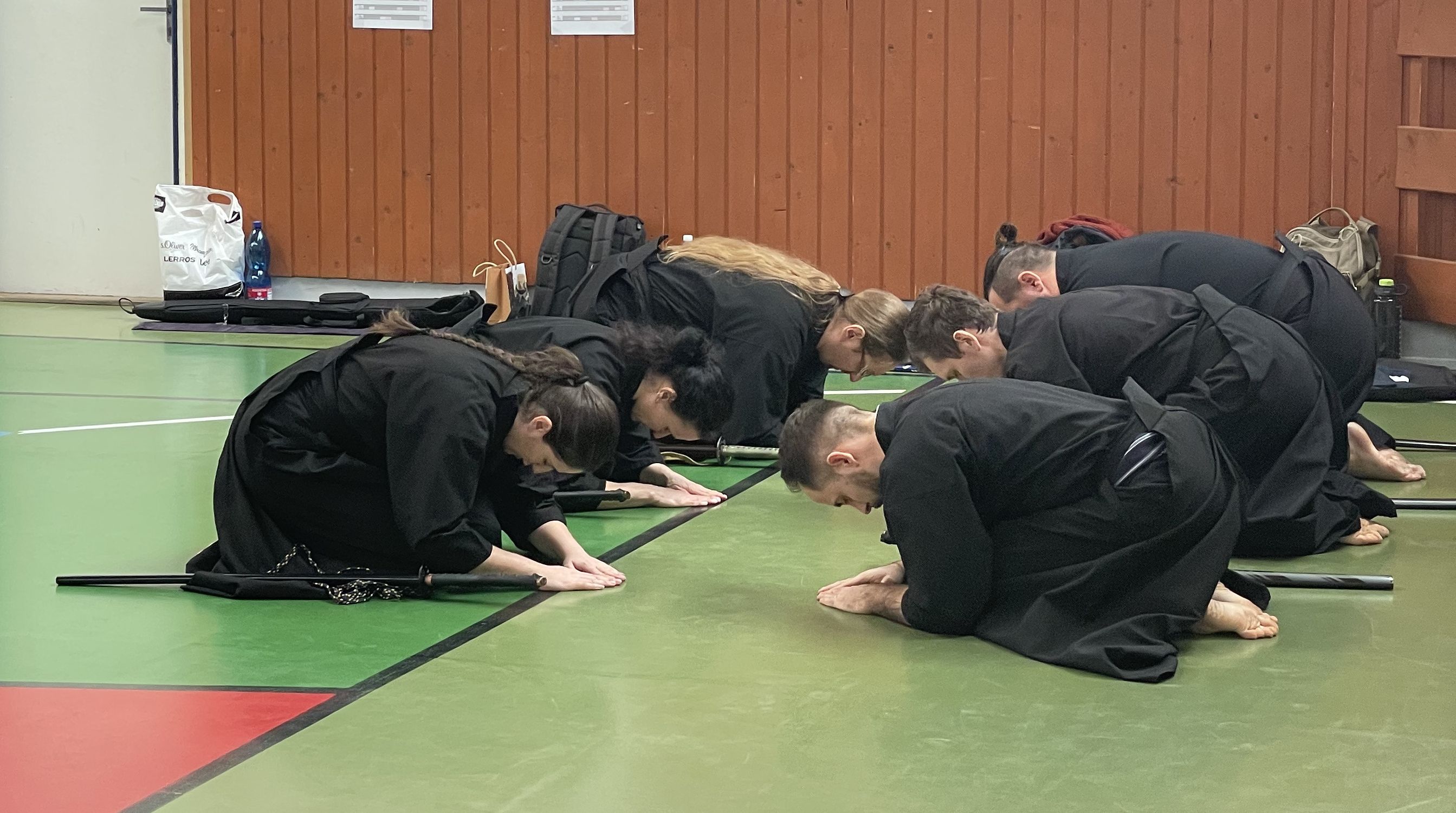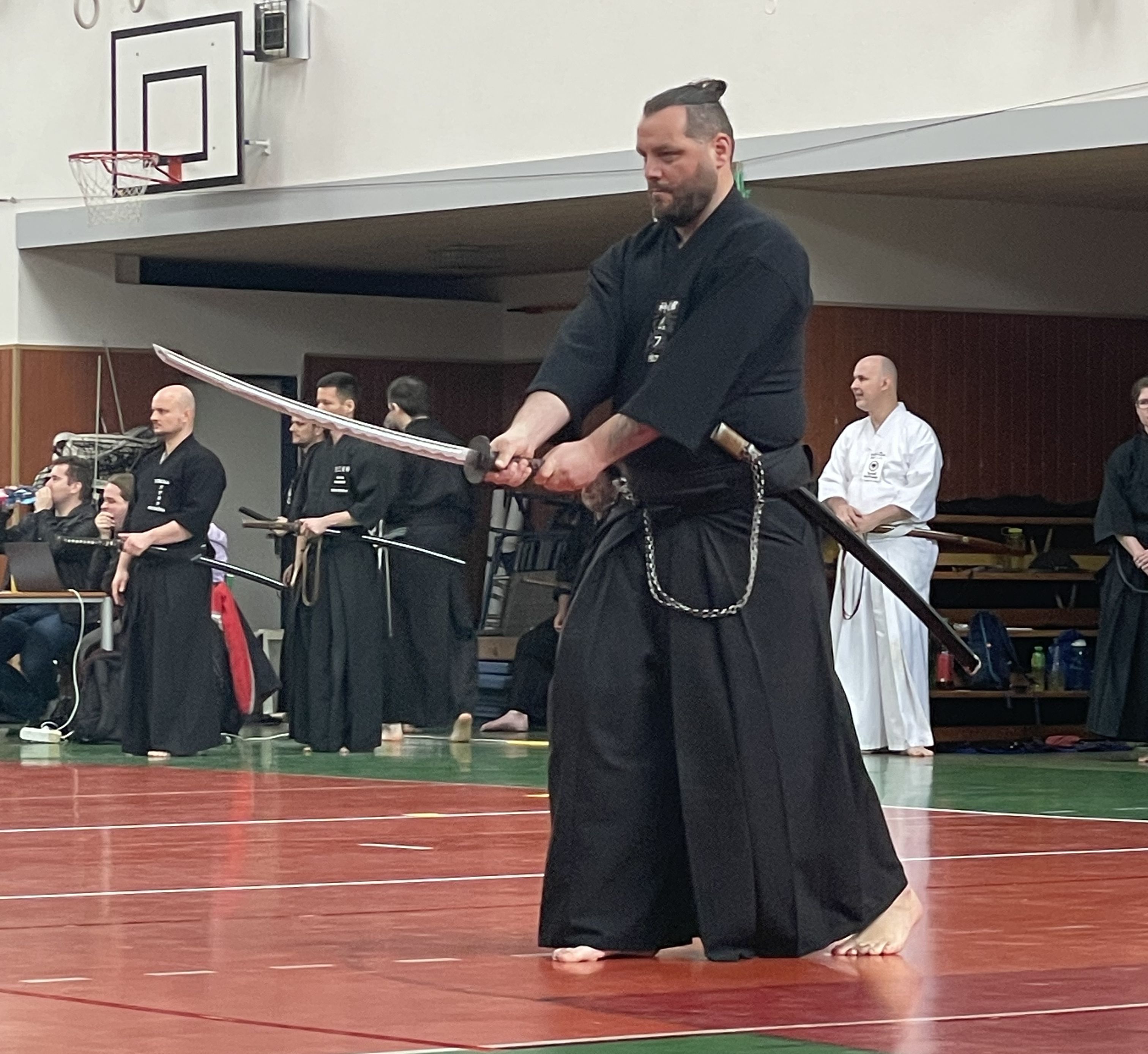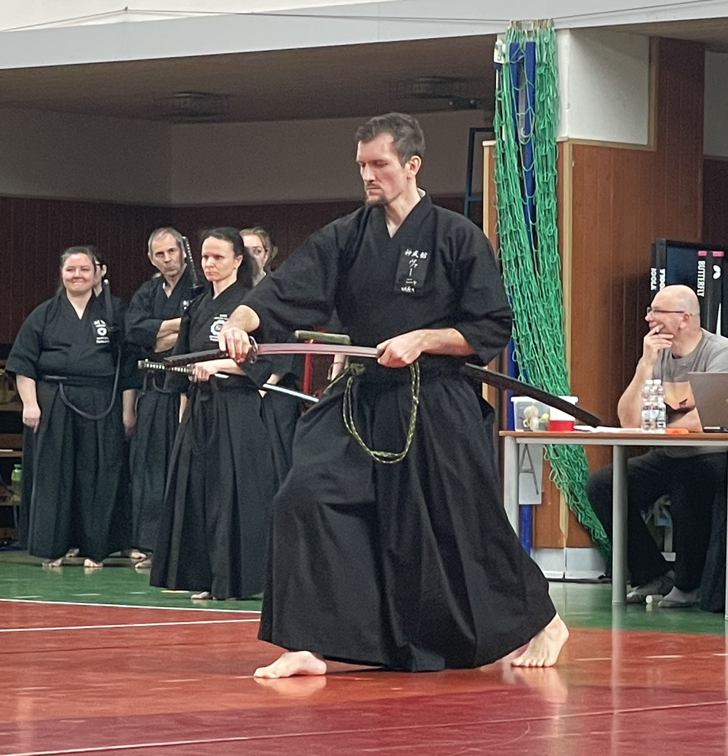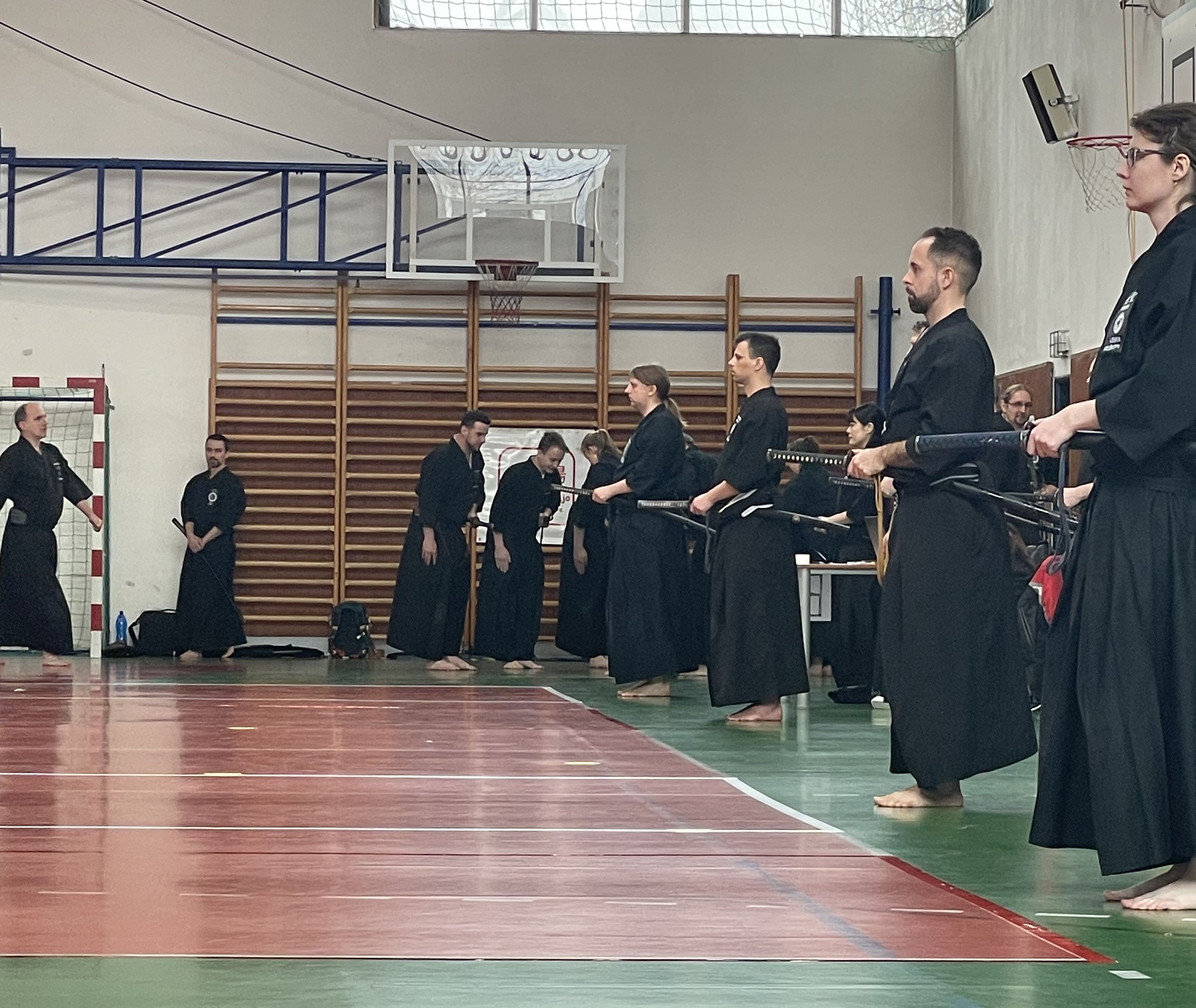 Většina účastníků mimo členy Nozomi se neúčastnila pátečního semináře v pozdních večerních hodinách, proto i pro nás program začal až v sobotu ráno. Do tělocvičny dorazila naše čtyřčlenná posádka auta díky skvělé organizaci času Jakubem Váňou krátce po 9:30, takže jsme měli dostatek času se před zahájením semináře v 10:00 protáhnout.