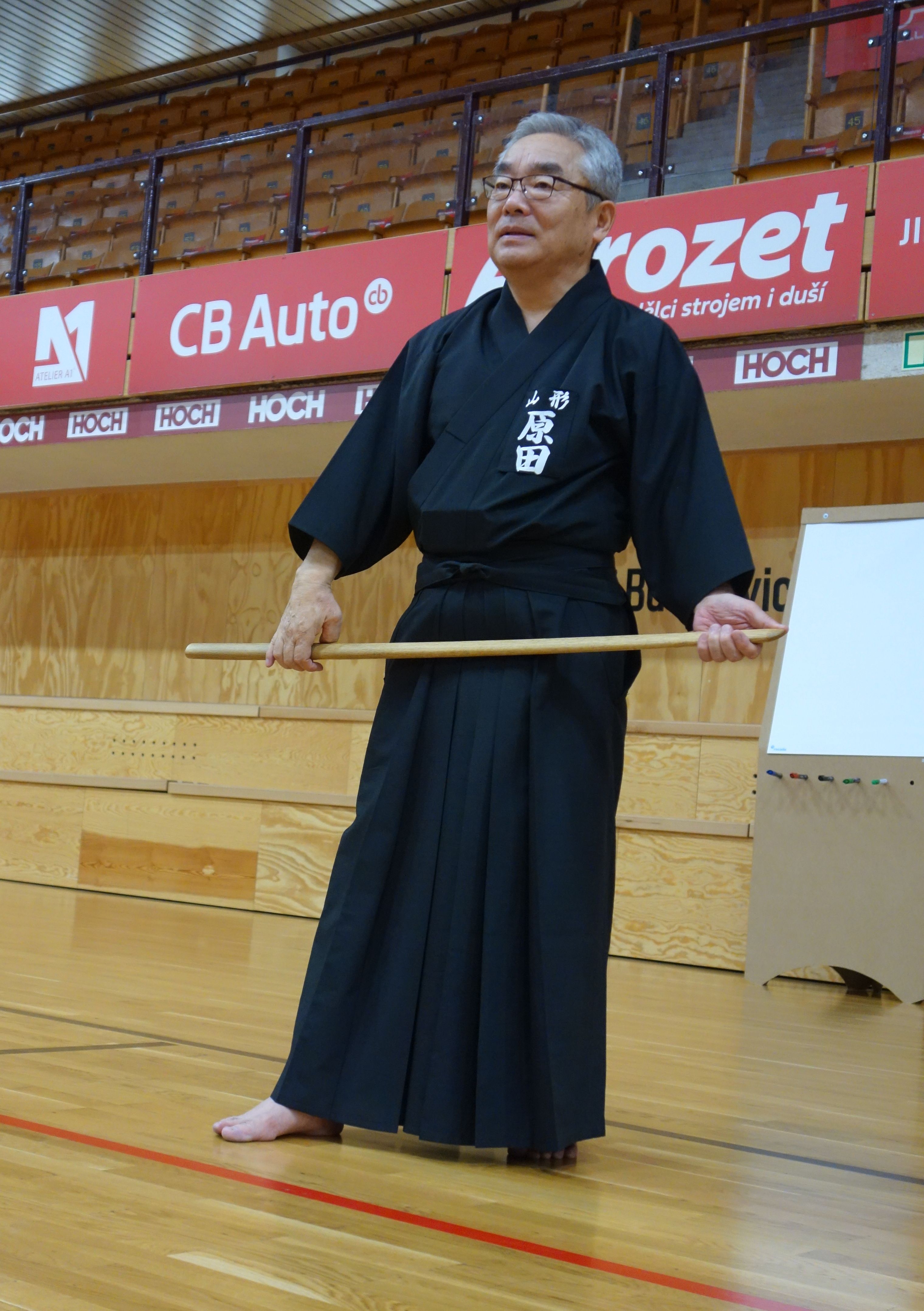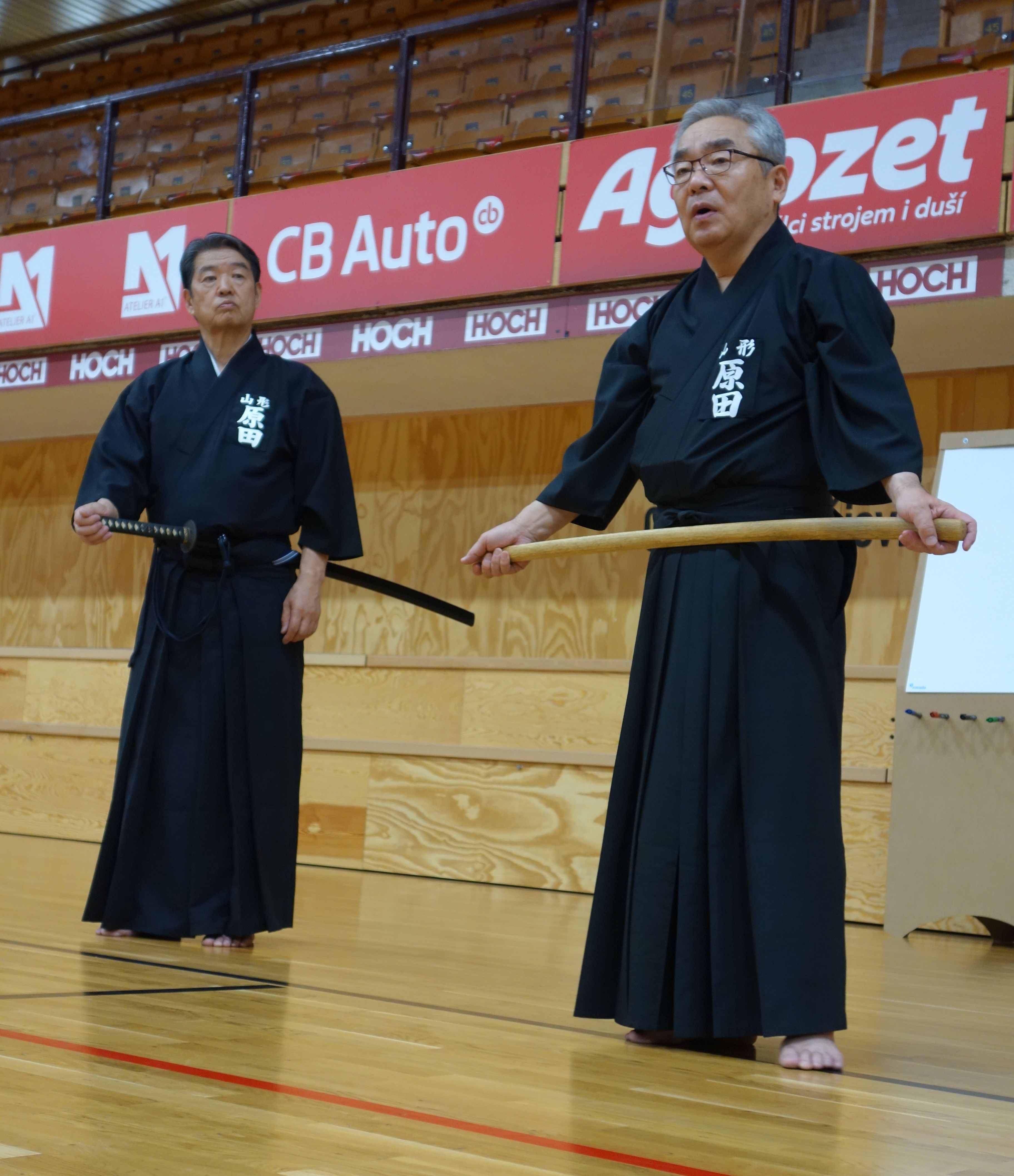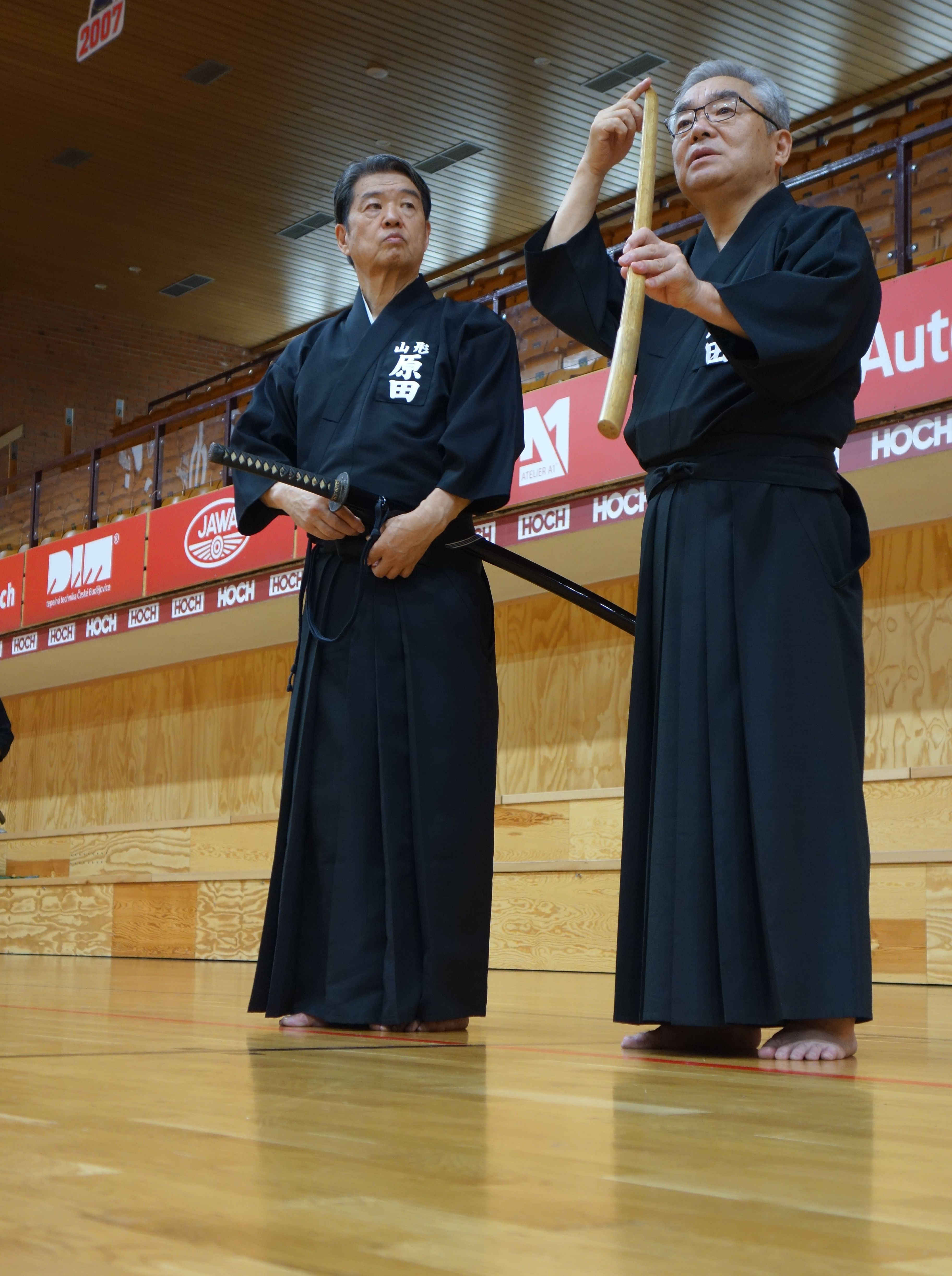 Jedním ze specifik seminářů s panem Haradou je i zapojení do harmonogramu delších besed či přednášek, kdy sensei vysvětluje některé principy, zajímavosti či záludnosti ze světa iaido.